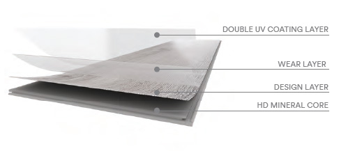 Celá konštrukcia podlahy je prakticky identický s ,, celovinylovým ,, prevedením, iba nosná PCV doska je v tomto výrobku nahradená doskou RCB / buď SPC , alebo WPC /
